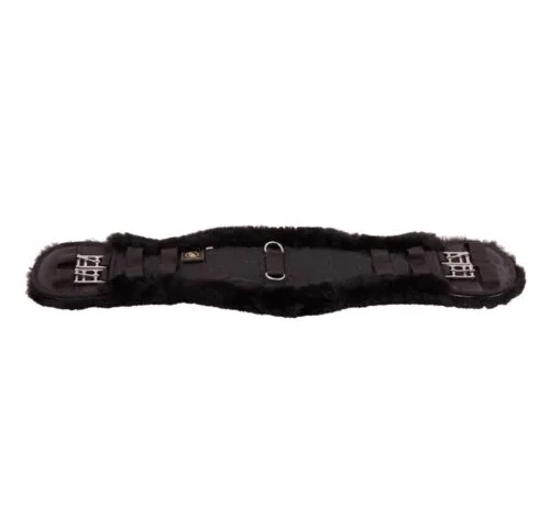 Anatomiskt utformad dressyrgjord, fodrad med medicinskt fårskinn. På grund av den böjda formen ger denna gjord mer frihet runt armbågen så att skav och skador på huden kan förhindras. Med rostfria spännen och D-ringar för eventuell infästning av hjälptyglar.