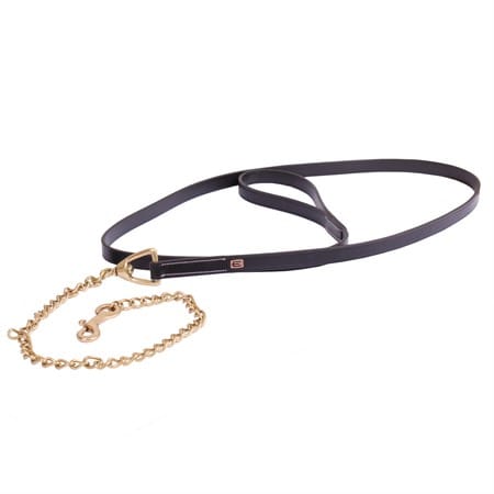 Stilrent grimskaft med handtag i exklusivt italienskt läder med vita sömmar och kedja och hake i mässing.