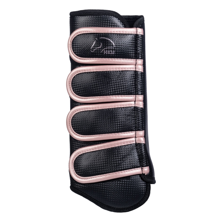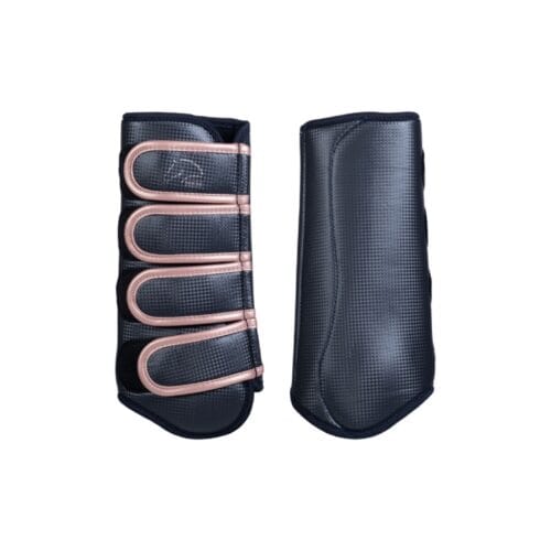 Dressyrdamasker i tåligt material, med rosegold-detaljer. För bakben (finns även för framben, de är något kortare med tre knäppen).