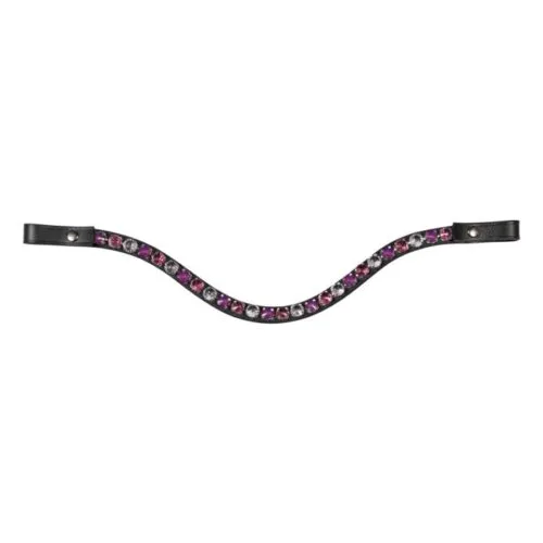 Pannband från HKM, tillverkat av kvalitetsläder med spännen på sidorna för att enkelt kunna tas av och på. Glittrande stenar. Pannbandet har en böjd form.