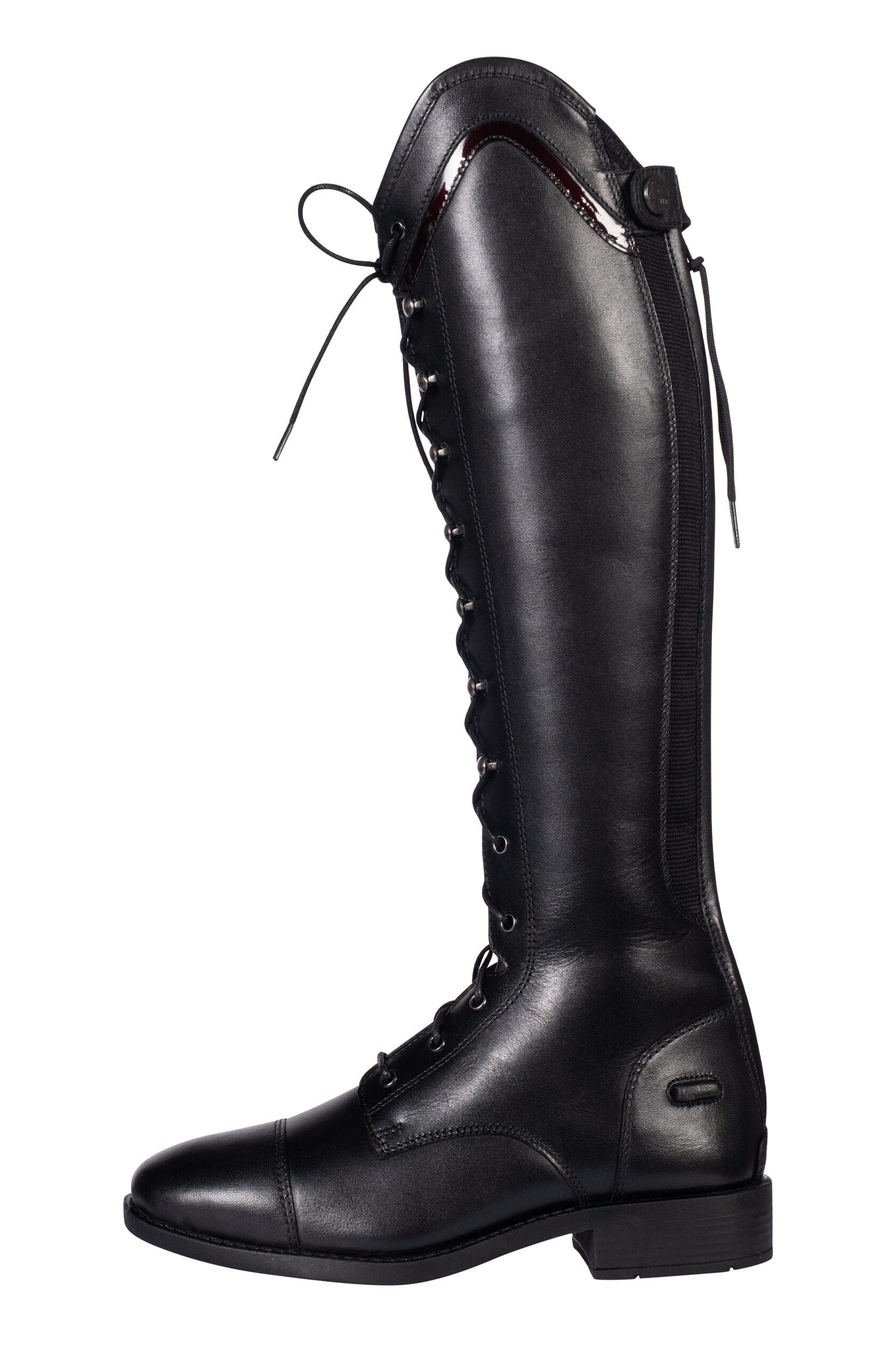 HKM Glam Lace ridstövel för barn kombinerar klassisk design med moderna detaljer för unga ryttare. Tillverkad i högkvalitativt läder med en insida i läder och syntet som ger både komfort och hållbarhet. Den elastiska insatsen ger en flexibel och följsam passform, medan dragkedjan baktill och tryckknappar gör stöveln enkel att ta av och på. Snörningen framtill tillsammans med eleganta lackdetaljer skapar en exklusiv look som passar perfekt för både träning och tävling.