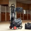 HorseGuard Trolley med 2 korgar är en praktisk stallvagn som ger god ordning och smidig förvaring av utrustning i vardagen. Vagnen är utrustad med två rymliga korgar som rymmer striglar, skötselprodukter och annan stallutrustning. Den integrerade sadelhållaren samt krokar för grimma, träns och tillbehör gör den till en komplett lösning i stallet. Den robusta konstruktionen är anpassad för daglig användning och hjulen gör vagnen lätt att flytta, även på ojämnt underlag. Ett kompakt men rymligt hjälpmedel för ryttare som vill ha ordning och överblick.