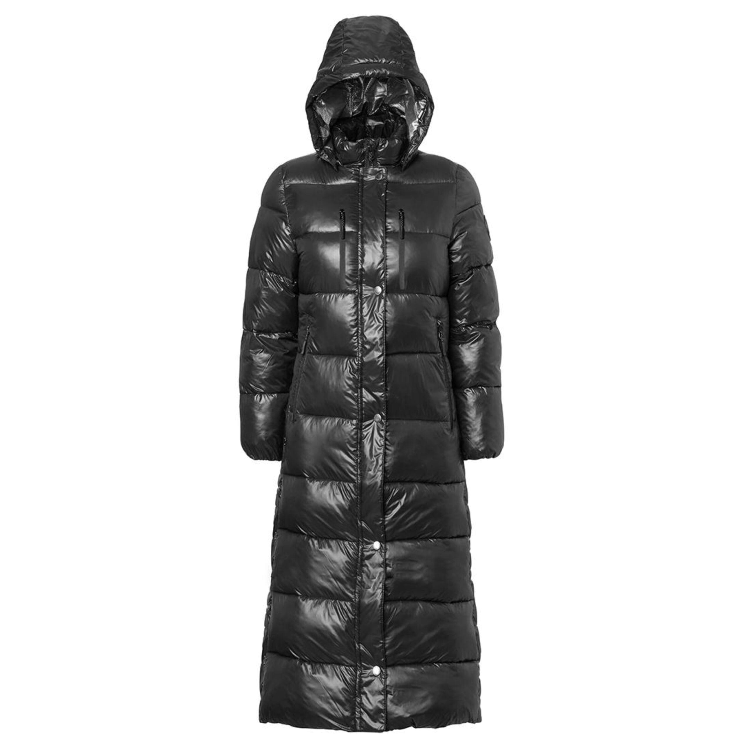 Den vadderade kragen och avtagbara, justerbara huvan med silverfärgat foder ger extra skydd mot kyla och vind, samtidigt som tvåvägsdragkedjan och vindslån framtill gör jackan praktisk i alla lägen. En sportigt lyxig vinterfavorit som håller dig både varm och stilsäker.
