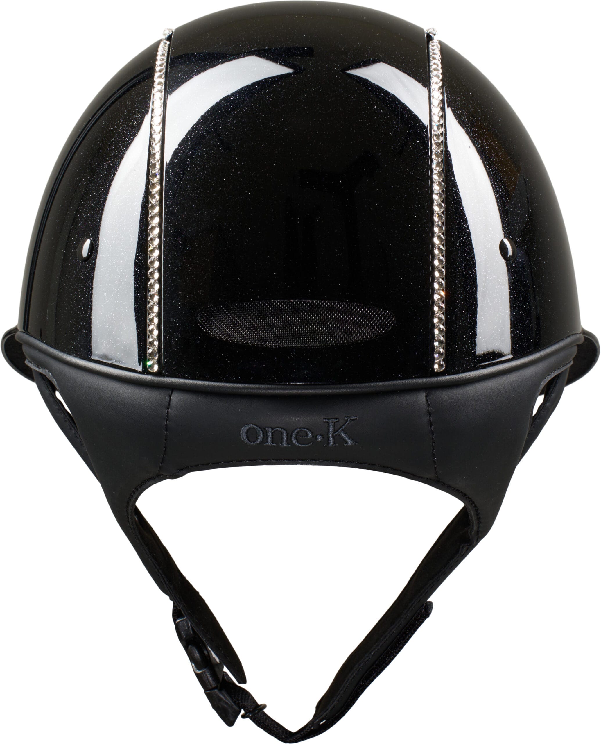 Swarovski-kristallerna är handapplicerade och följer hjälmens form hela vägen ner längs fronten – en gnistrande signatur som ger din ridstil en sofistikerad självsäkerhet.