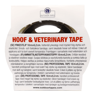 Tejpen har testats av hovslagare och veterinärer med mycket goda resultat. Tejpen heter Hov- och Veterinärtejp och håller den standard som yrkesfolk kräver. Den är till stor hjälp för att skydda, stabilisera och fuktsäkra vid hovbölder, gipsning och bandagering.