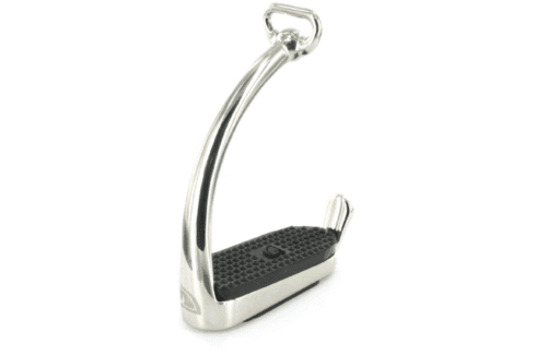 En av marknadens säkraste stigbyglar, som dessutom både är snygg och extremt bekväm att använda. Levereras med gummisidor som kan sättas på stigbygeln (se bild 2).